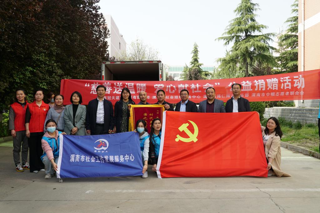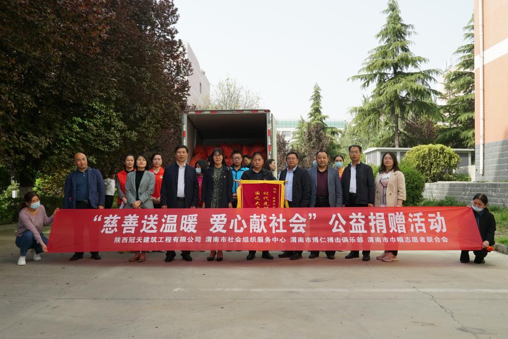 4月12日下午,“慈善送温暖,爱心献社会”公益捐赠活动仪式在我校二餐西面广场举行,渭南市社会组织服务,陕西冠天建筑工程有限公司,渭南市博仁搏击俱乐部,渭南市巾帼志愿者联合会、渭南市社会工作发展服务中心等爱心社会组织及爱心企业参加,仪式由渭南师范学院后勤服务中心主任王争辉主持。